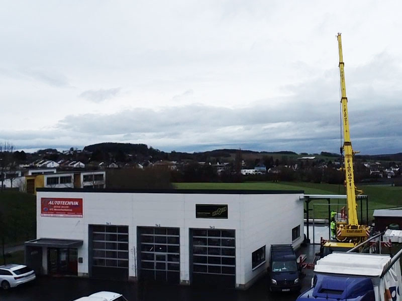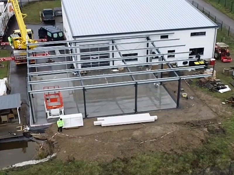 Unser Hallenbau-Team errichtet hier einen Anbau :