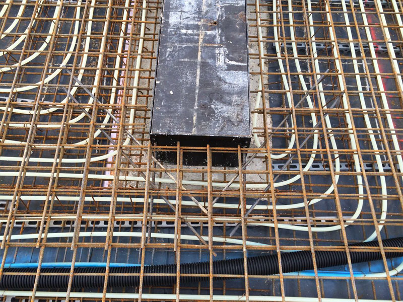 Schlaffarmierte bzw. z. Teil vorgespannte Stahlbetonhohlplatten nach DIN 1045-1, Betongüte C50/60, lt. Planunterlagen, d=20 cm, Nutzlast 1,5 kN/qm +1,25 kN/qm für Trennwandaufnahme, F 30-Ausführung, Plattenbreite bis 225 cm; incl. eingebauter Grundbewehrung; Untersicht der Deckenplatten schalungsglatt und tapezierfähig.