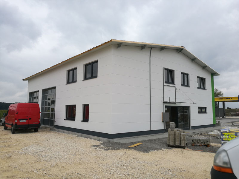Unser Hallenbau-Team errichtet hier einen kfz Gutachter: