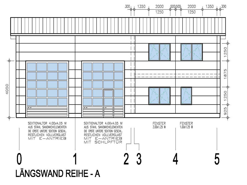 Werkhallen mit Außenwand aus liegend verlegten Porenbeton-Wandplatten mit gefasten Längskanten