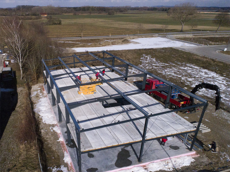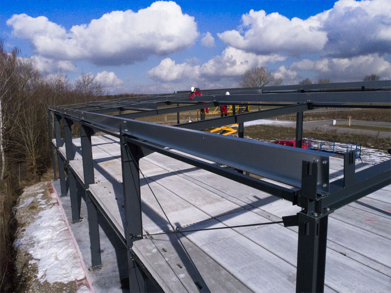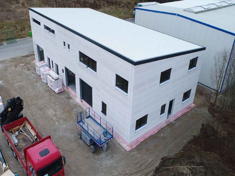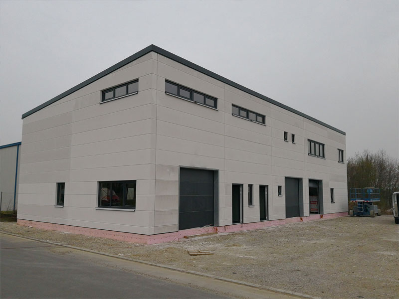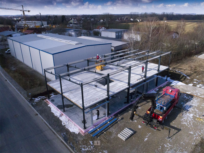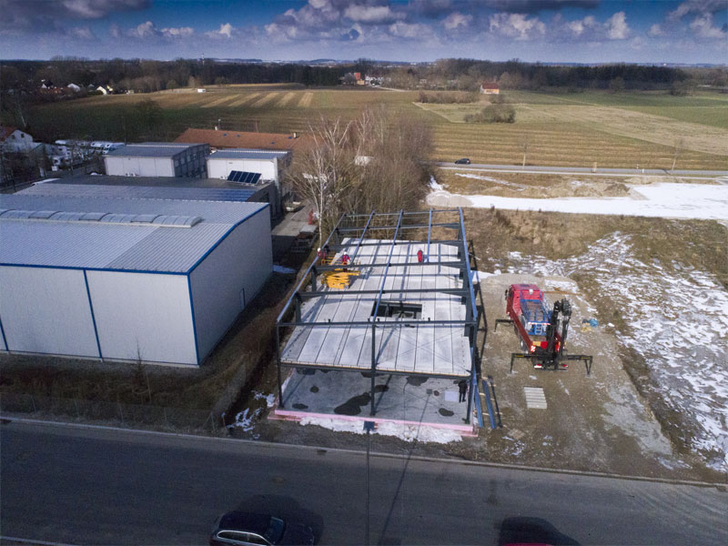 Unser Hallenbau-Team errichtet hier für die Fa. ESS-Systeme GmbH eine Werkhalle :