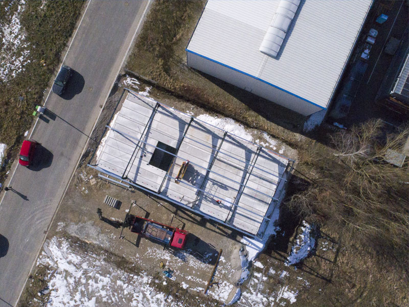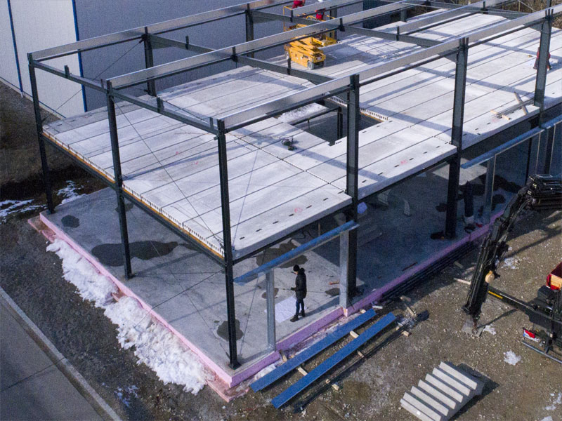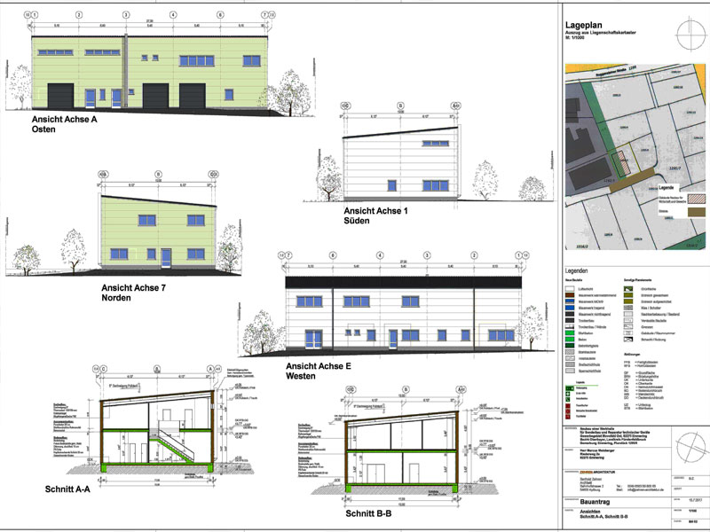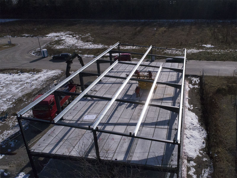 Ausführung der tragenden Konstruktion in Stahlbauweise aus Walzprofilen, Stützeinstellung und Raster gemäß Eingabeplanung.