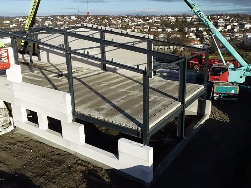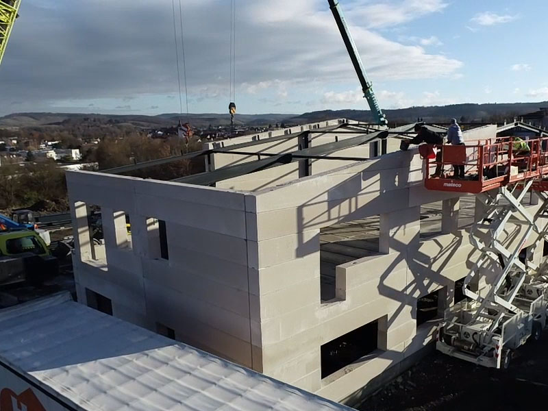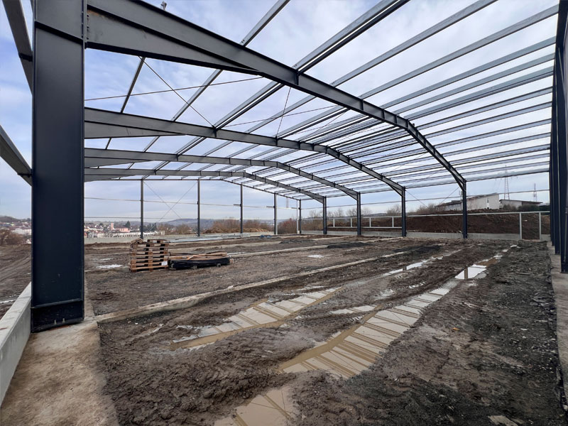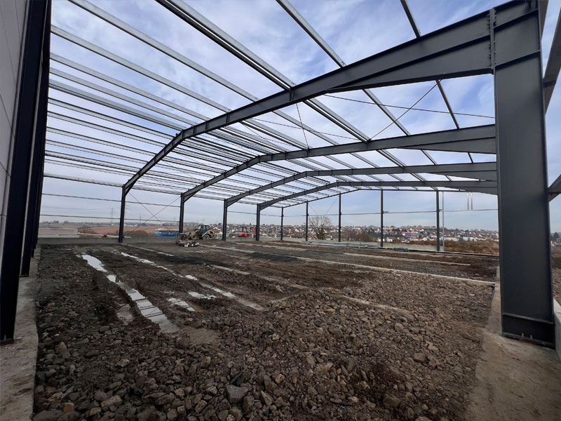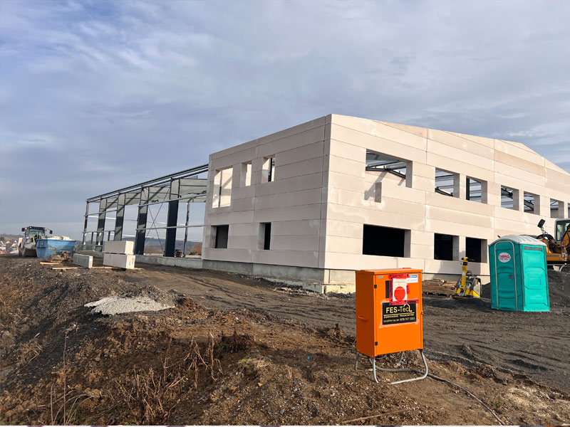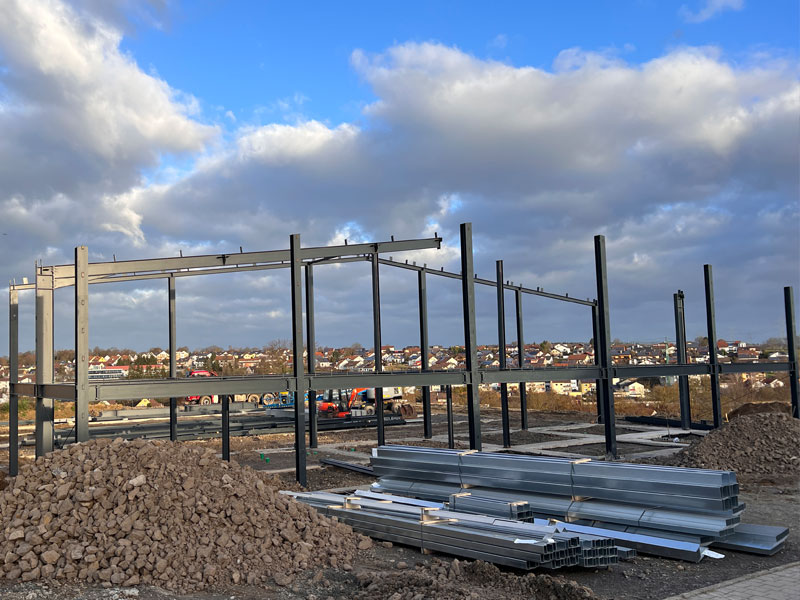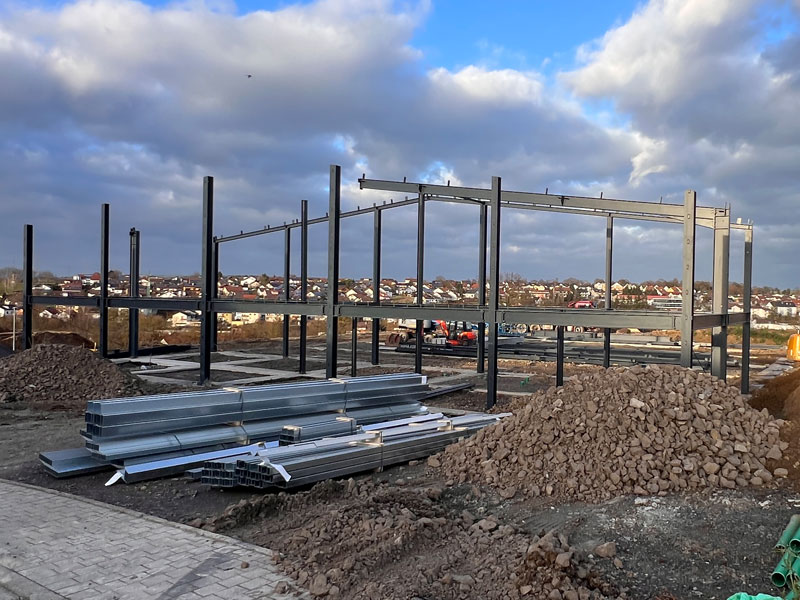 Wir Werkhallenbau errichten hier einen Getränkte halle mit Büro und Wohn: