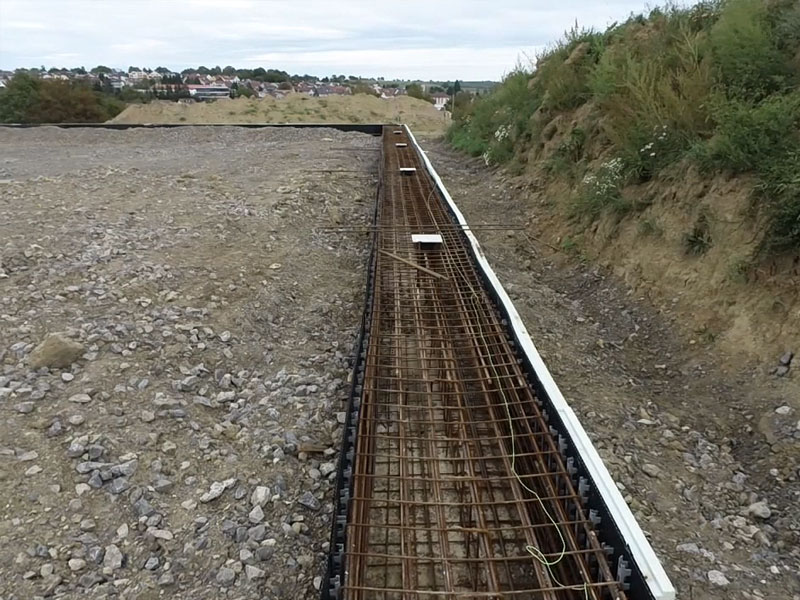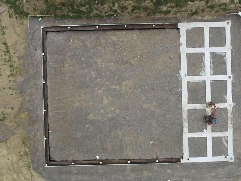 GB 4.4-0,55, vor der Stahlkonstruktion verlegt. Einschließlich aller Schrägschnitte, Tor-, Konsol- und Riegelaussparungen sowie der Eck- und Fensterendstücke, Passplatten.