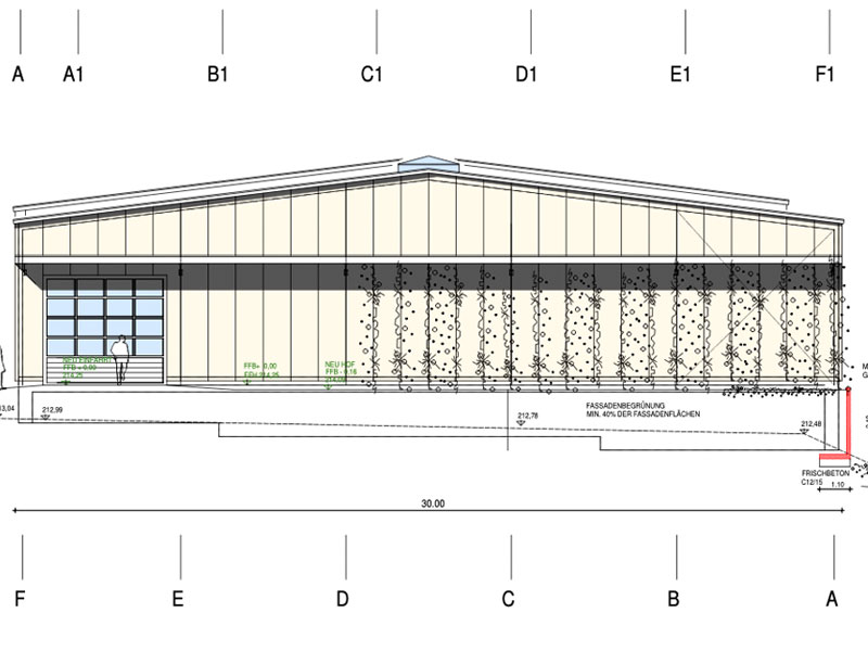 Traufe // First : 4,3 // 5,5 m über Hallenboden
