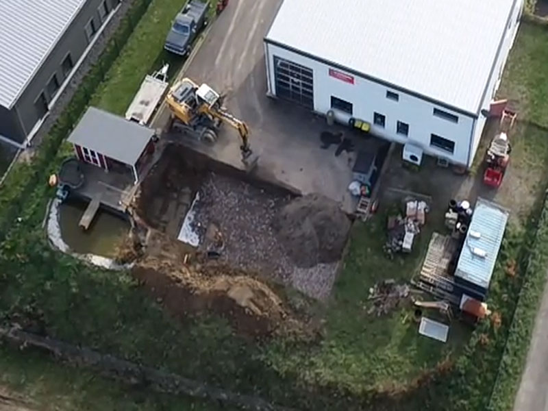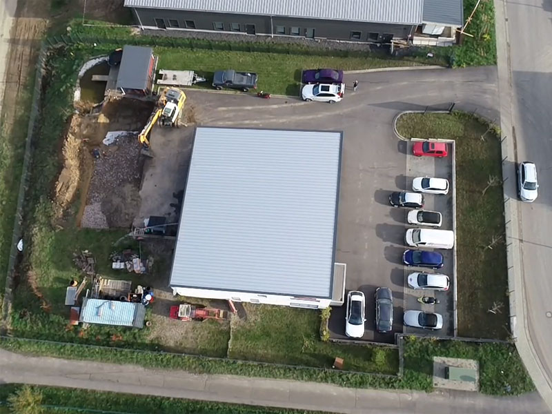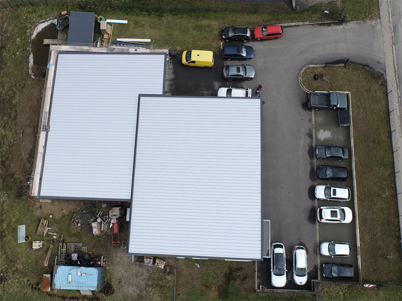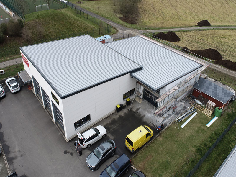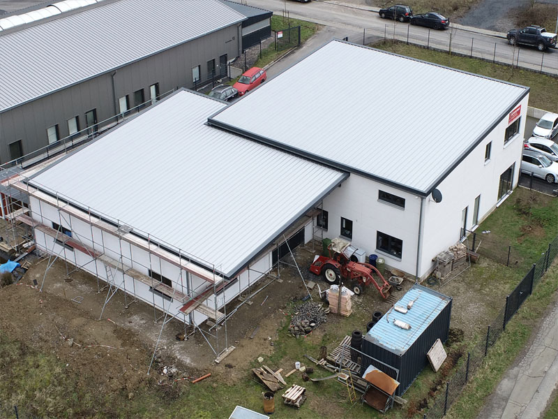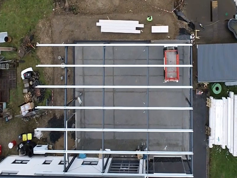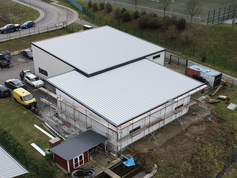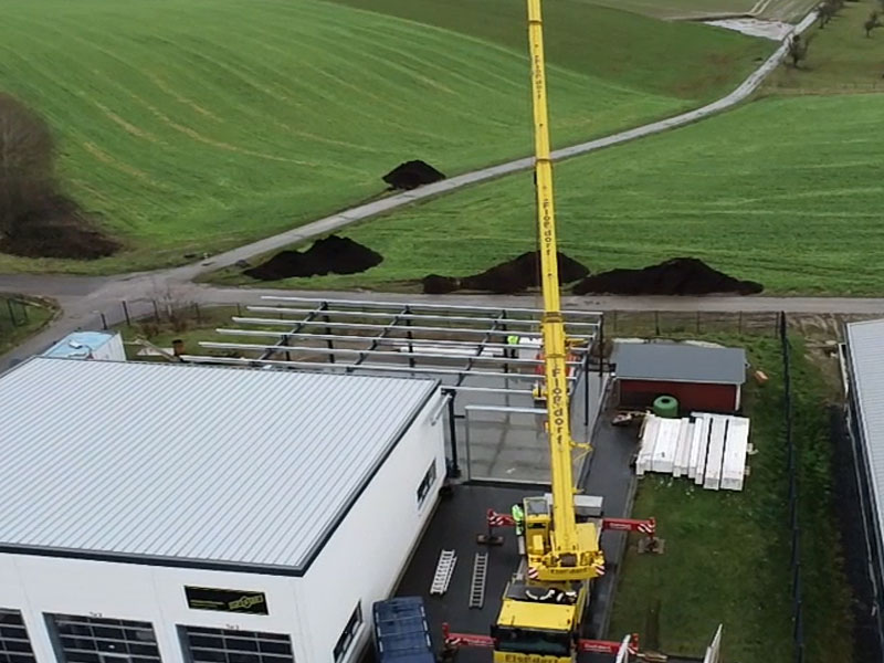 Unser Hallenbau-Team errichtet hier einen Anbau :