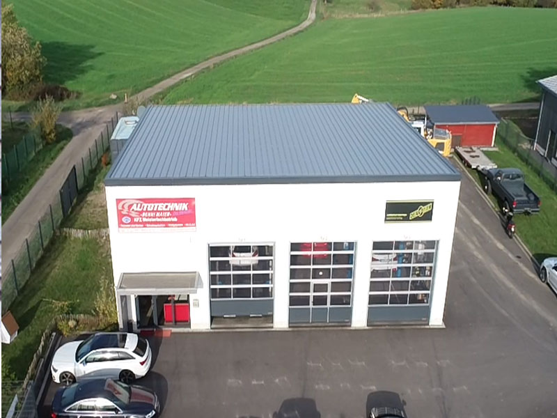 Werkhallenbau mit Außenwand aus liegend verlegten Porenbeton-Wandplatten mit gefasten Längskanten