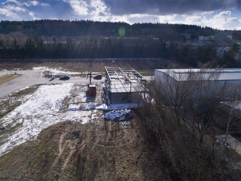 Unser Hallenbau-Team errichtet hier für die Fa. ESS-Systeme GmbH eine Werkhalle :